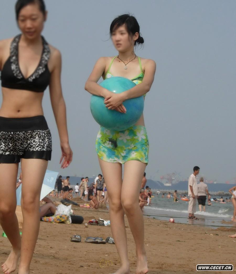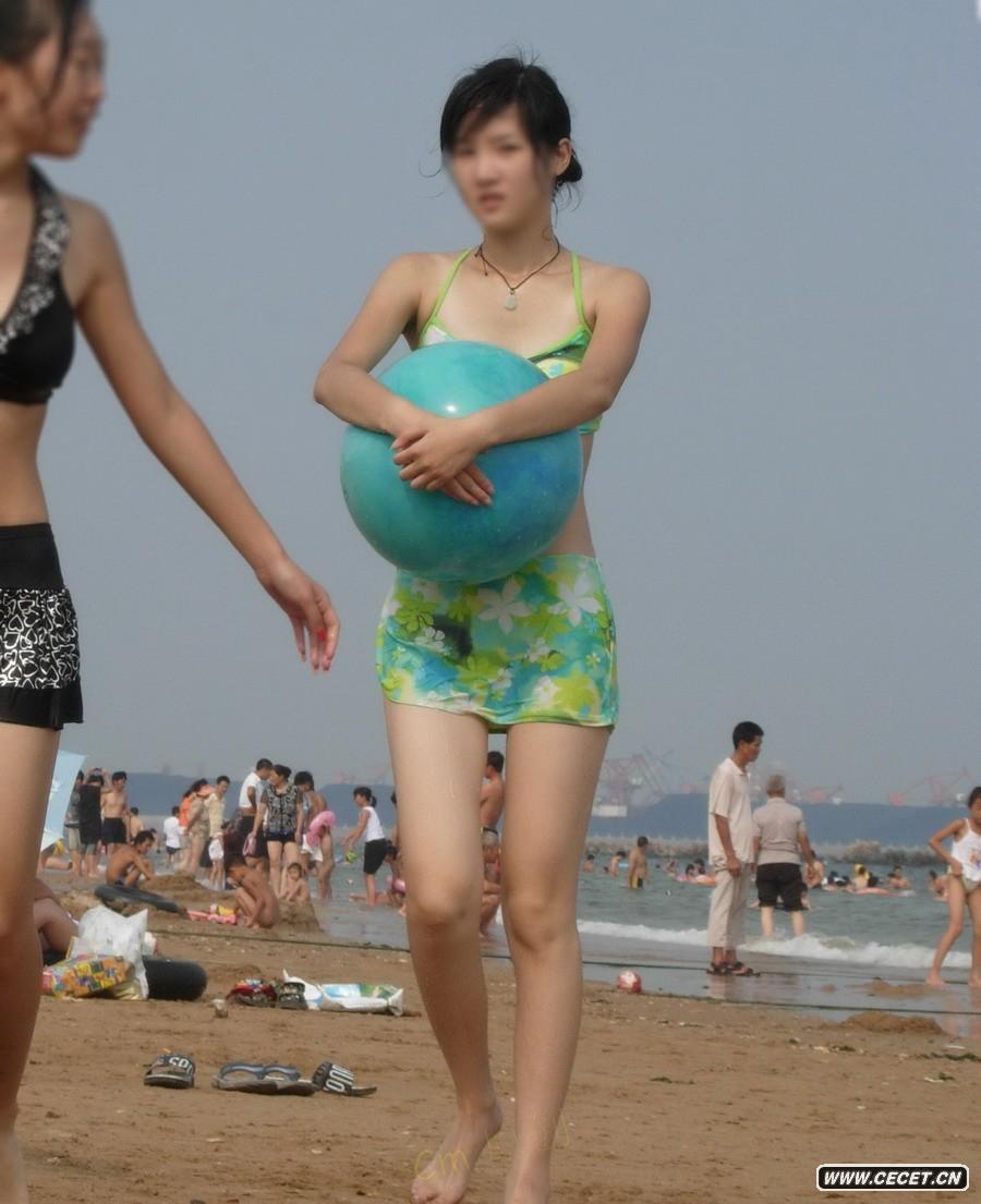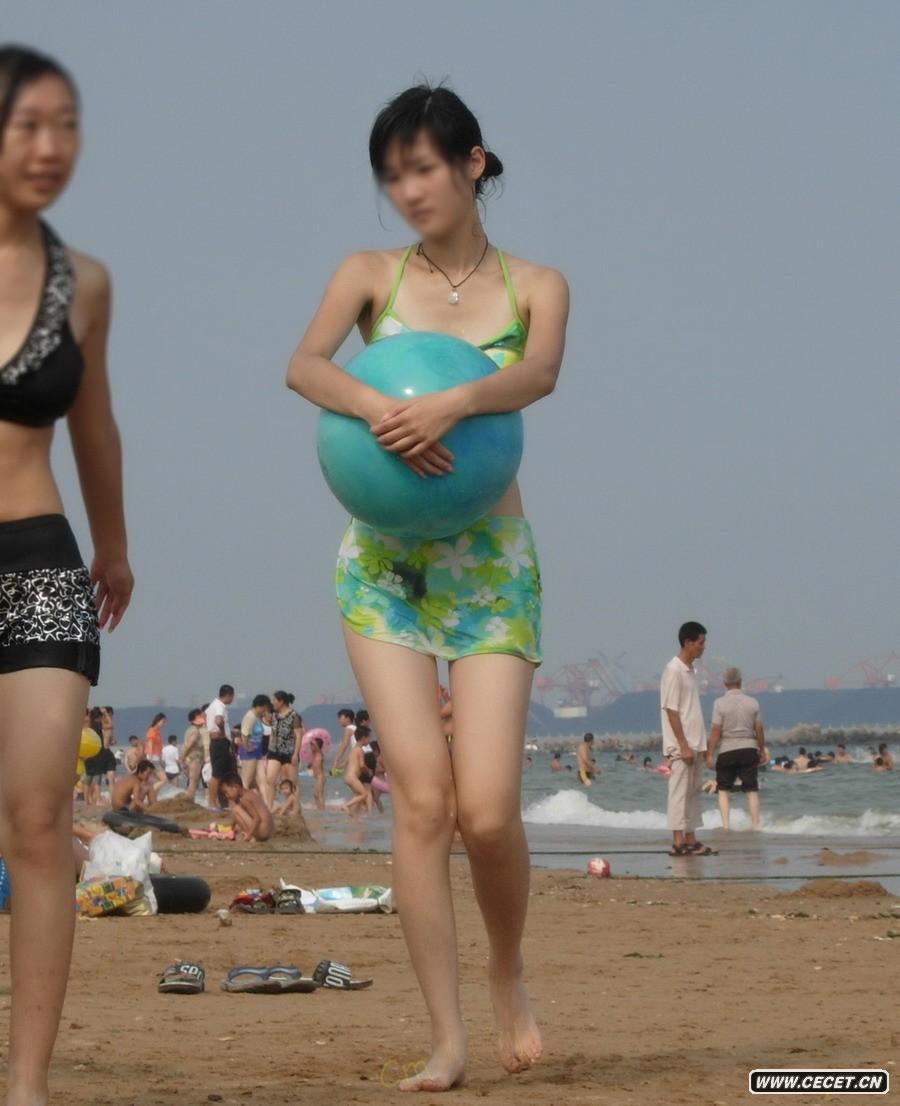 海边游泳的漂亮女孩