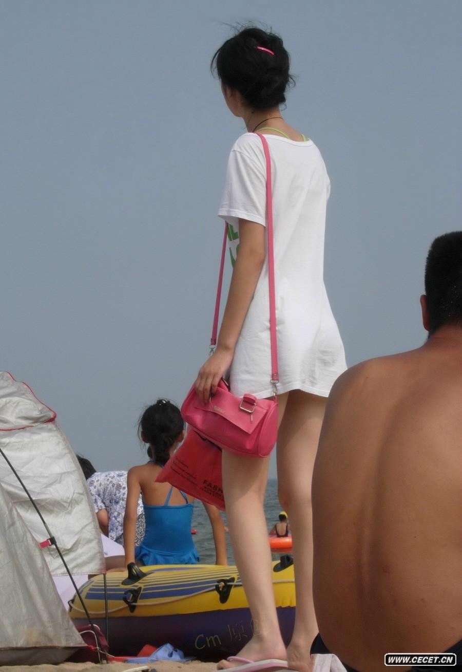 街拍薄衫白色短裤美女