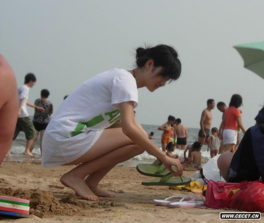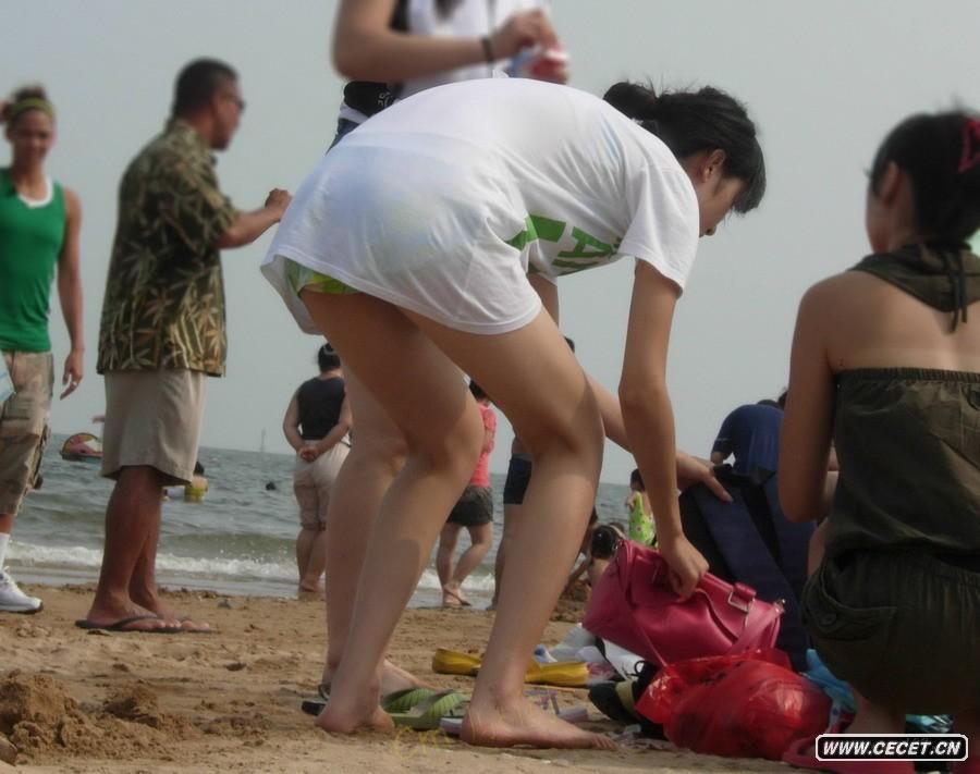 海边游泳的漂亮女孩