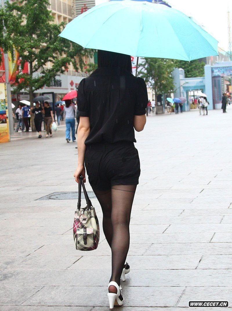 抓拍的雨中黑丝MM