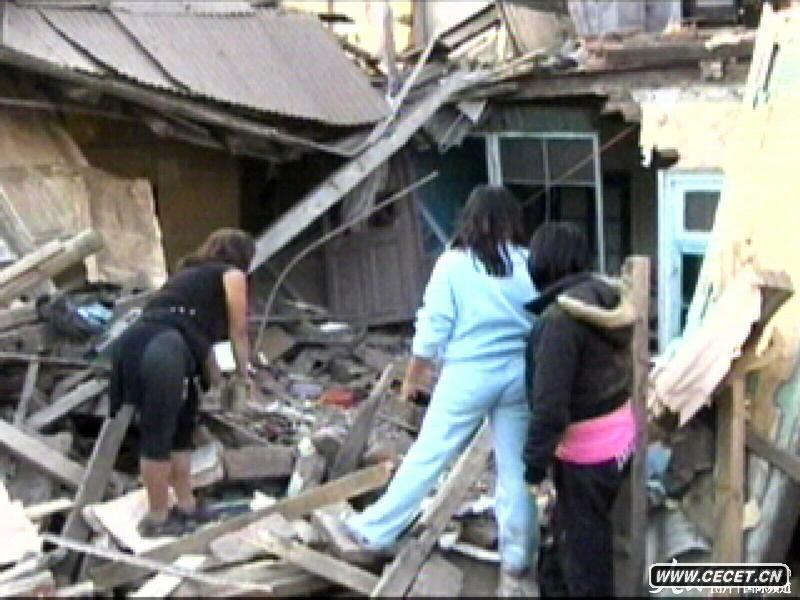 2010年2月27日,智利,塔尔卡:地震中倒塌的房屋。智利中部康塞普西翁省附近北京时间2010年2月27日14时34分发生里氏8.8级强烈地震,智利首都圣地亚哥有震感。 (图18)