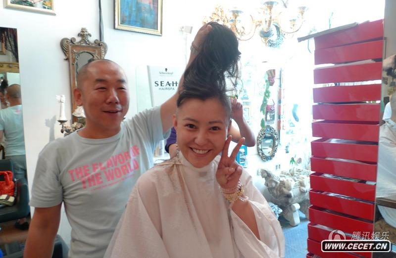 郝蕾为当代艺术摄影展 忍痛剃光头