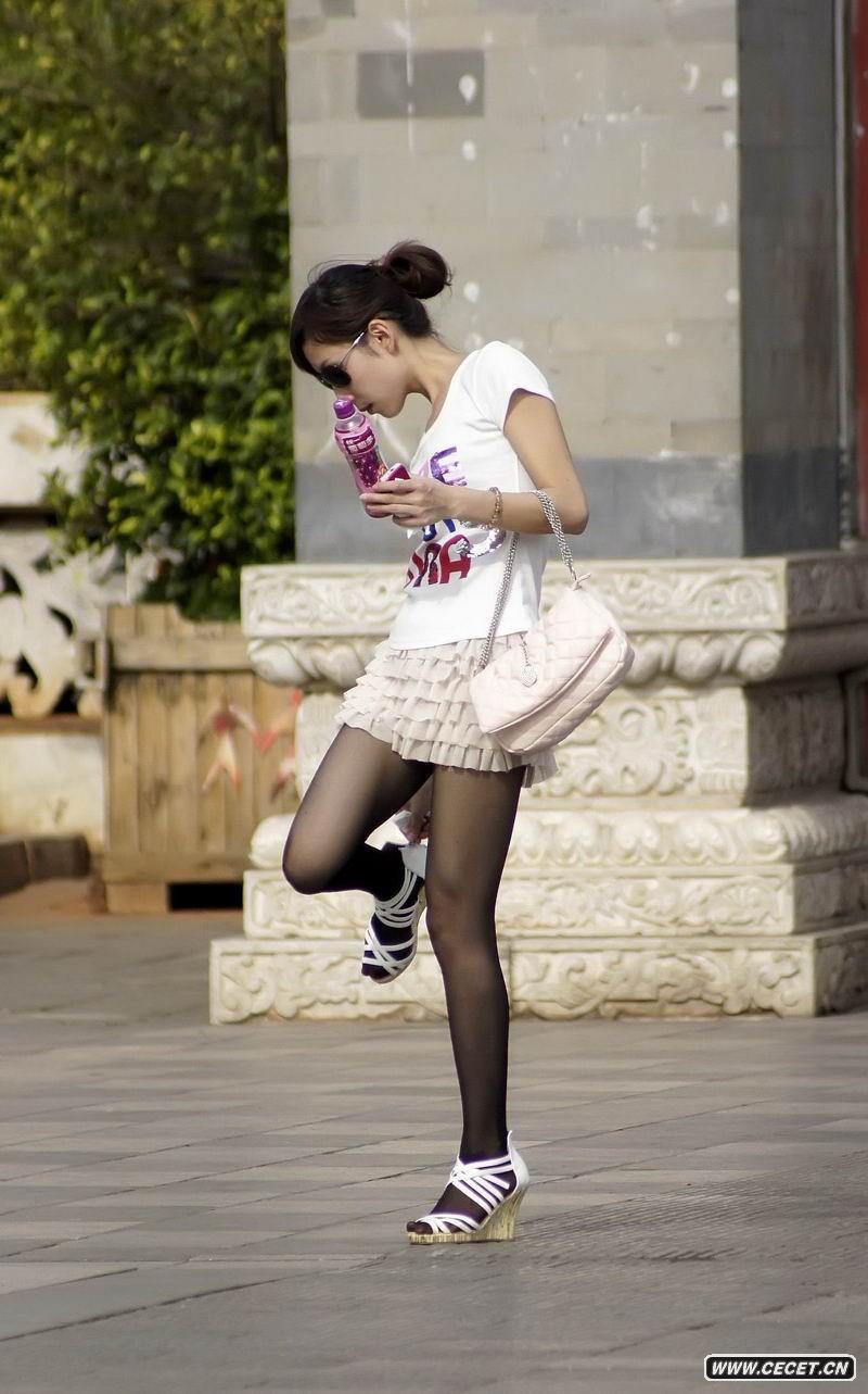 丁香路街拍紧身裤美女