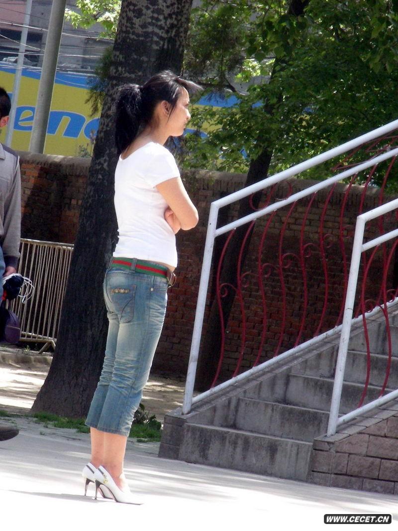 车站东路街拍牛仔美女