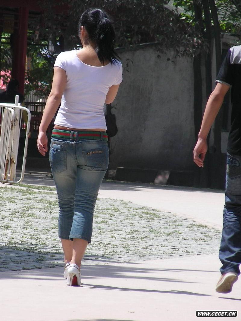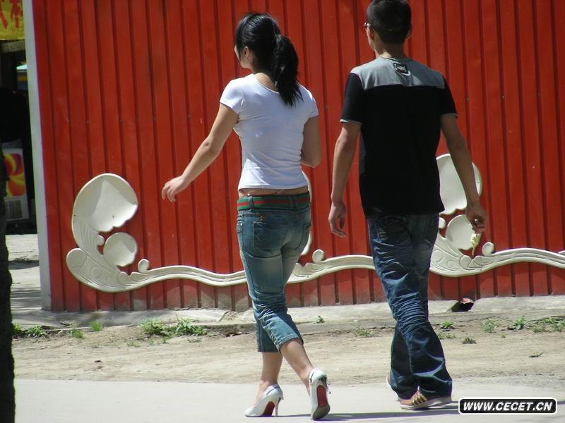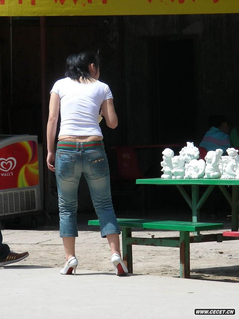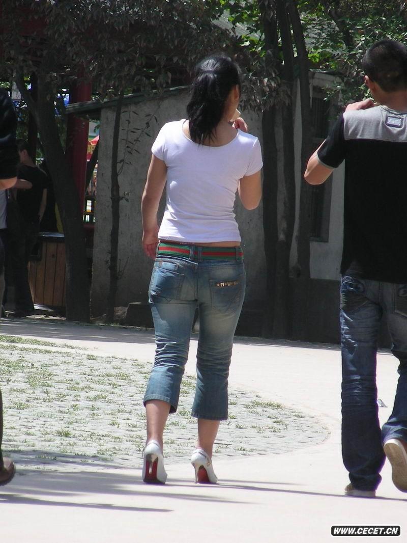 游乐场的牛仔裤少妇