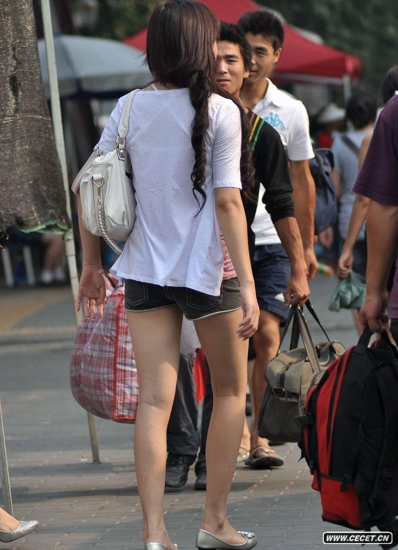 过天桥的性感美腿少妇