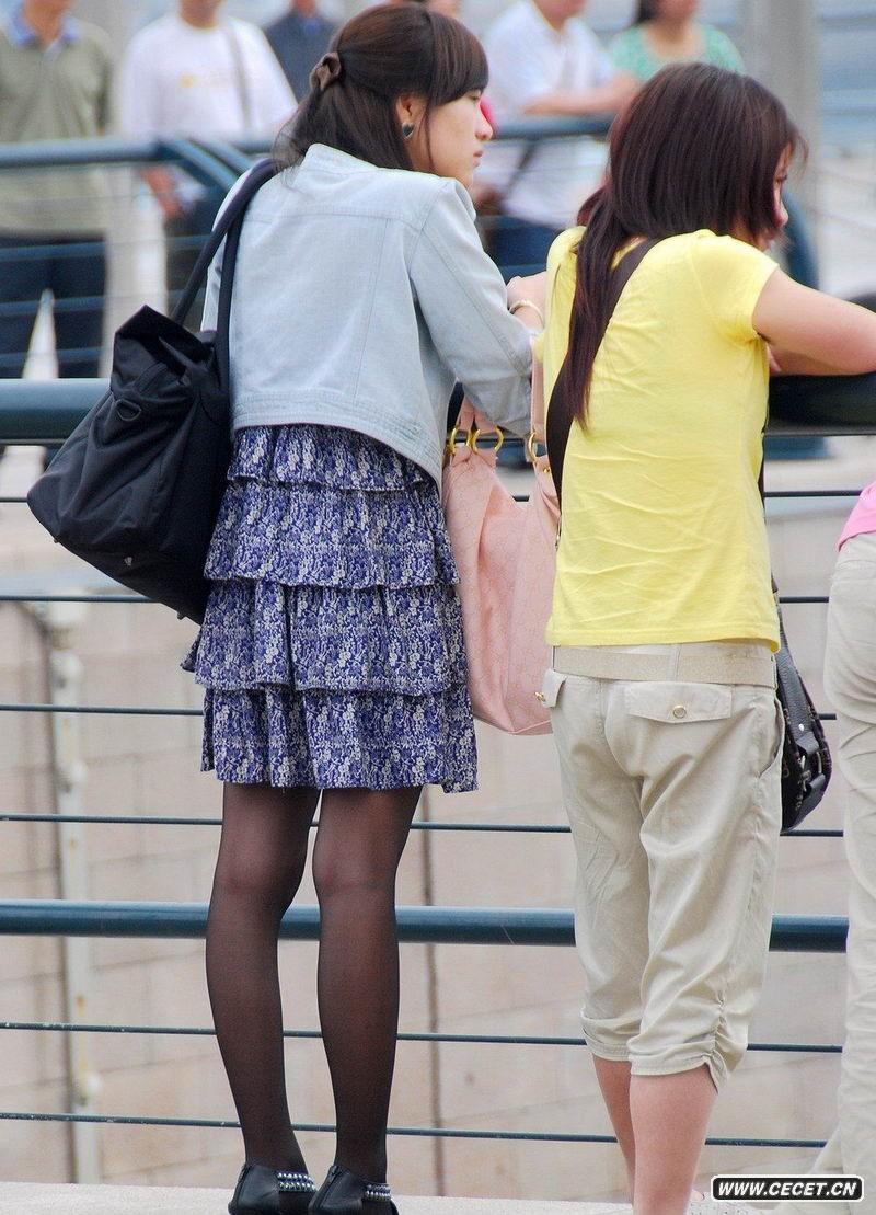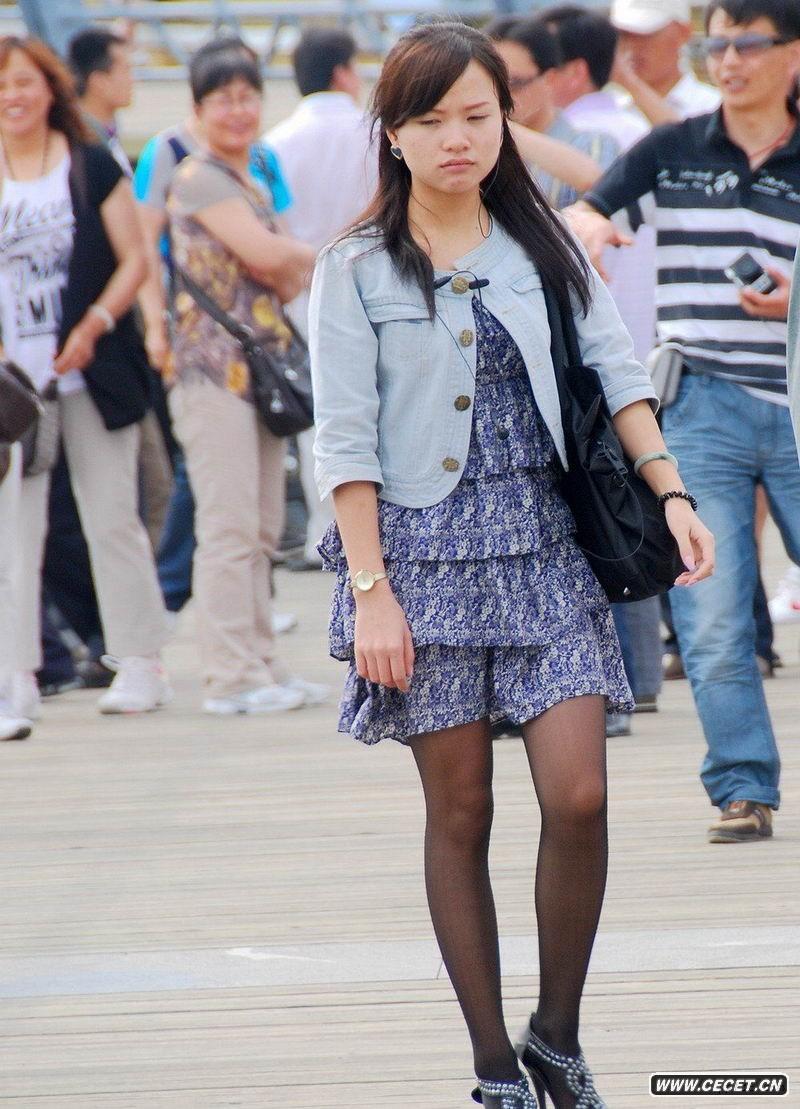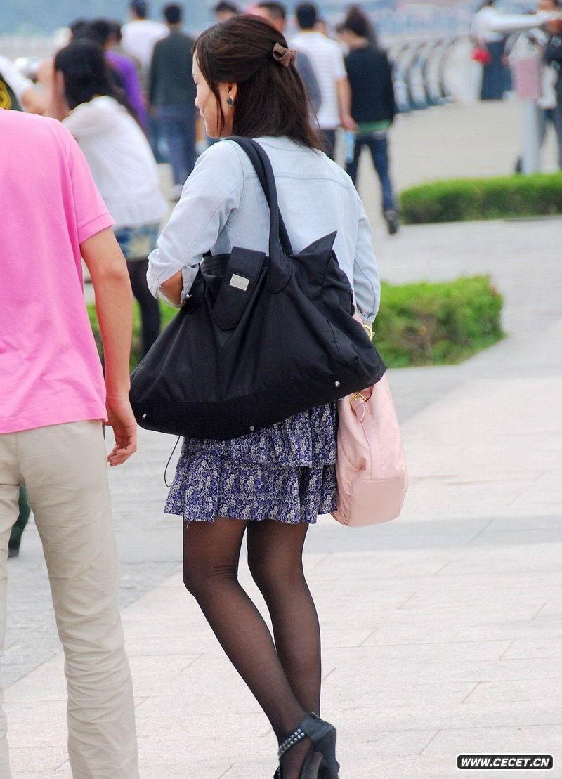 玉沙路街拍的黑丝袜短