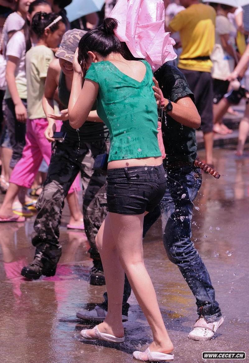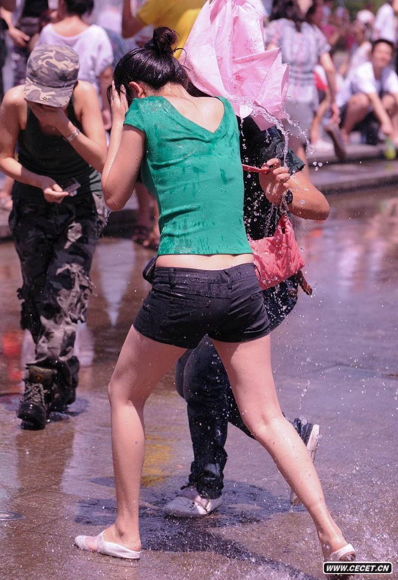 喷泉玩水的湿身美女