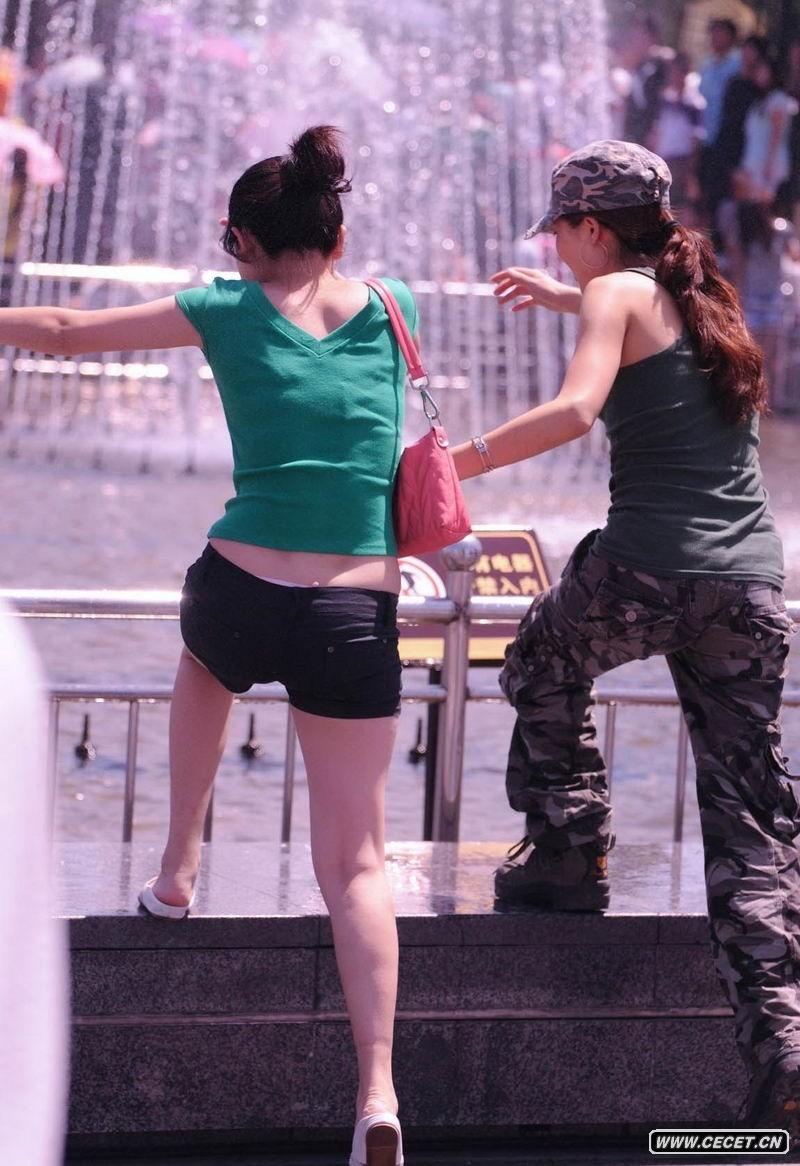 喷泉玩水的湿身美女