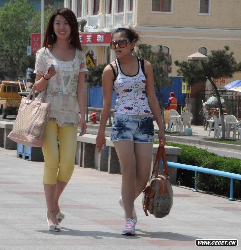 光明西路街拍热裤美女