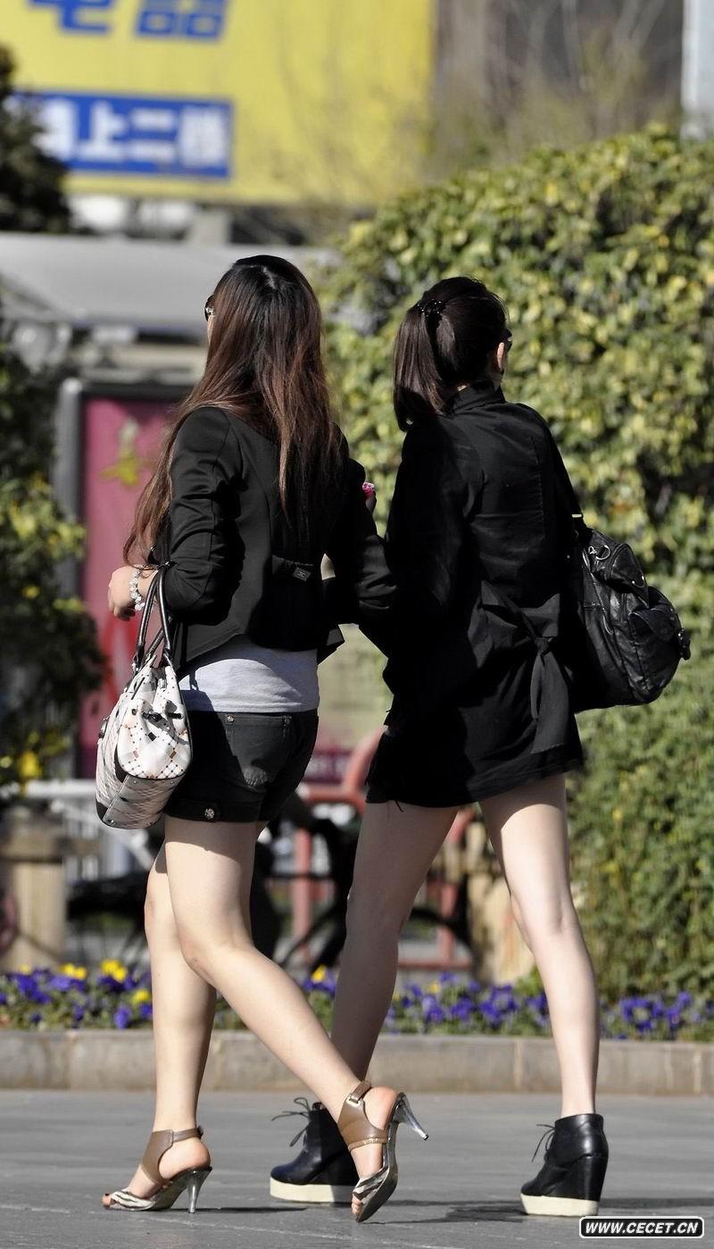 跟拍超短裙白腿姐妹