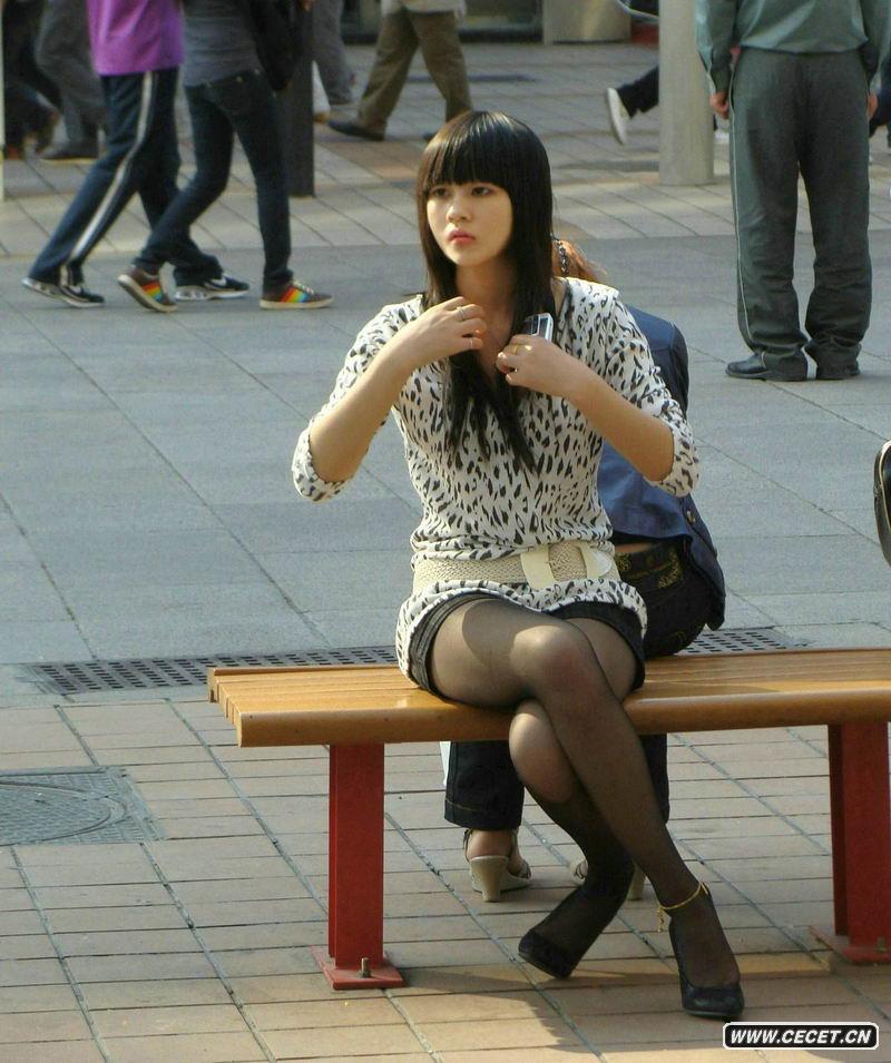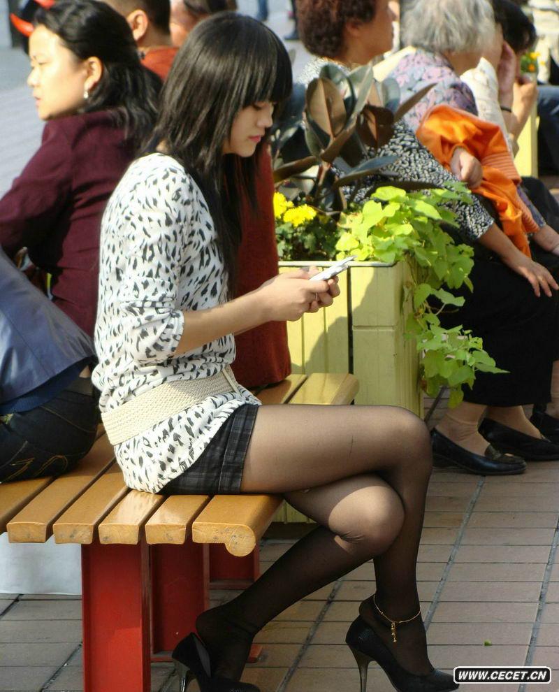 街拍休息的黑丝美女