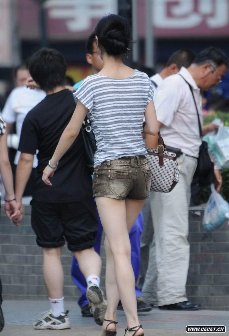 街拍牛仔短裤长腿美女