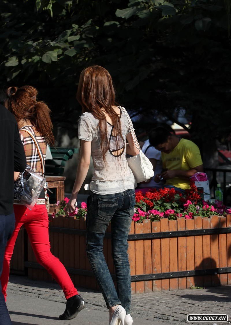 街心公园黑色牛仔美女
