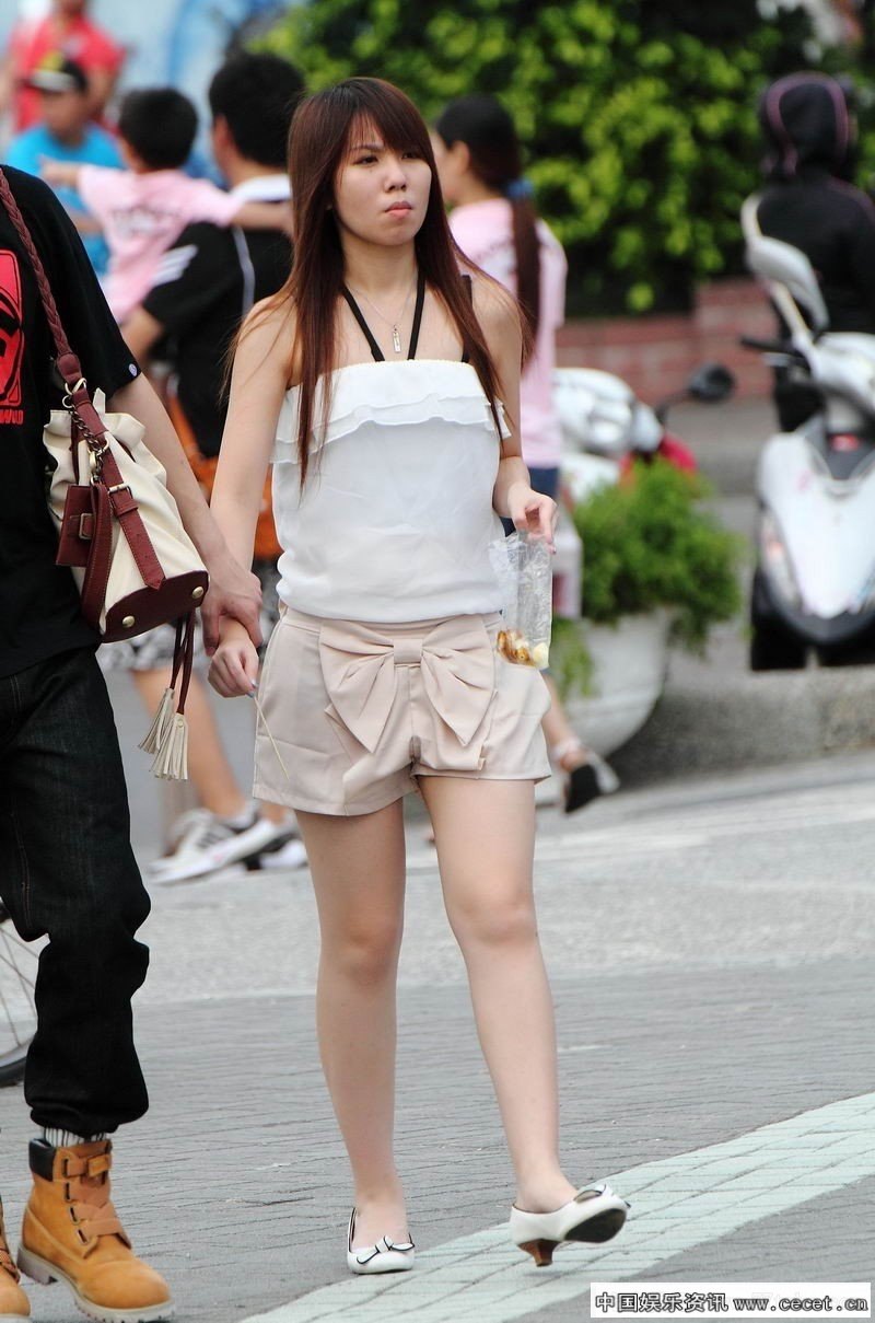 街拍紧身热裤裸腿美眉