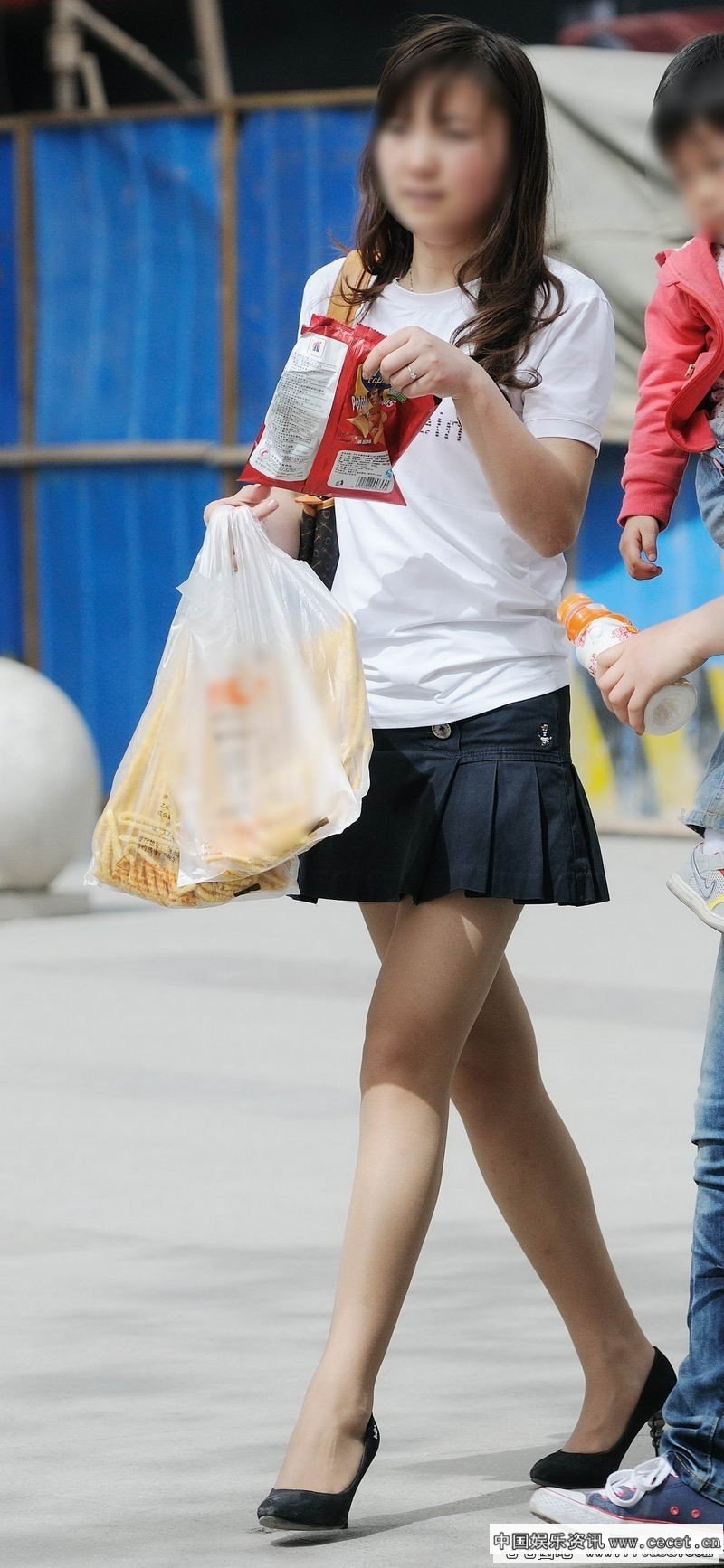 街拍黑色短裙丝袜美腿