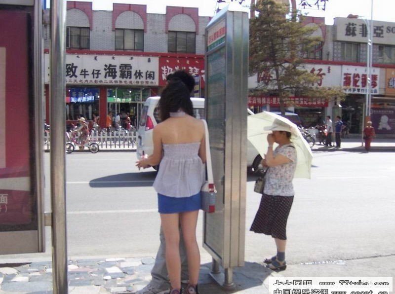 公交车站抓拍的紧身白
