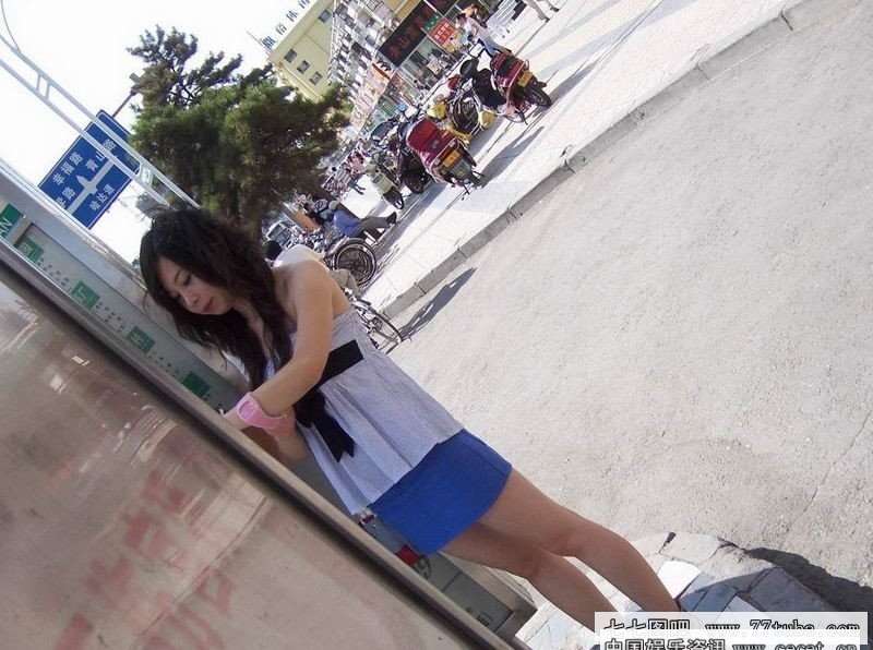 公交车站街拍短裙女生