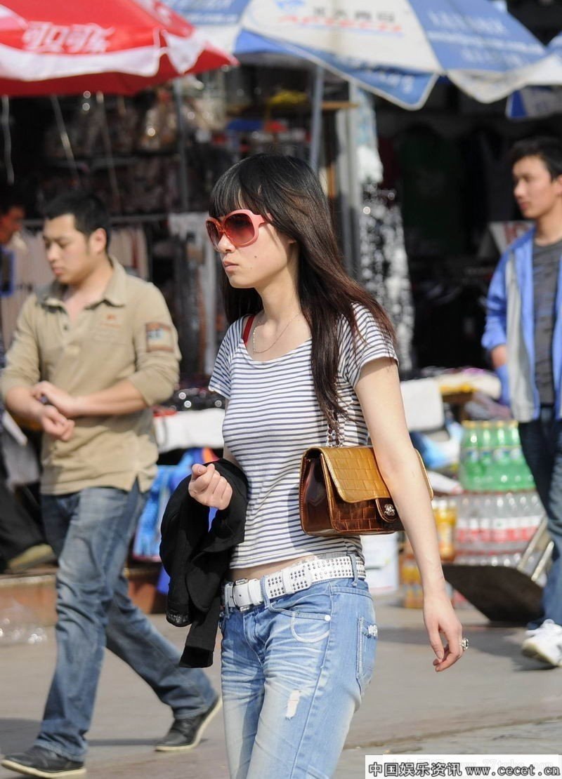 虎踞北路街拍牛仔裤MM
