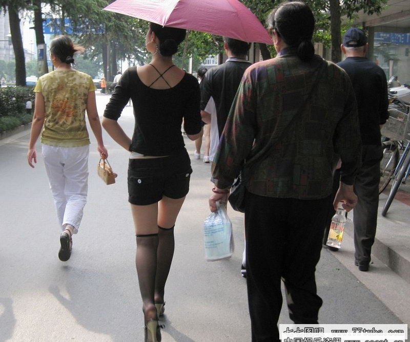 步行街抓拍黑丝腿美女