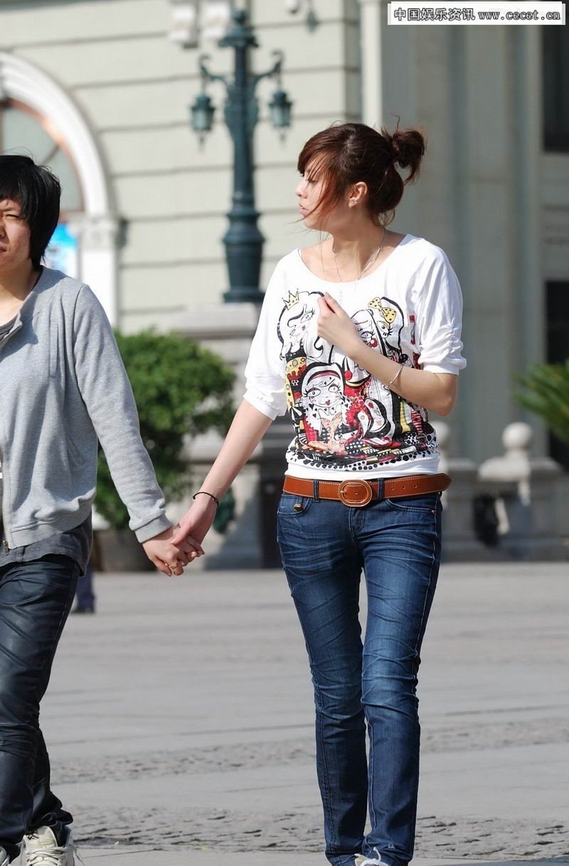 街拍的长细美腿牛仔热