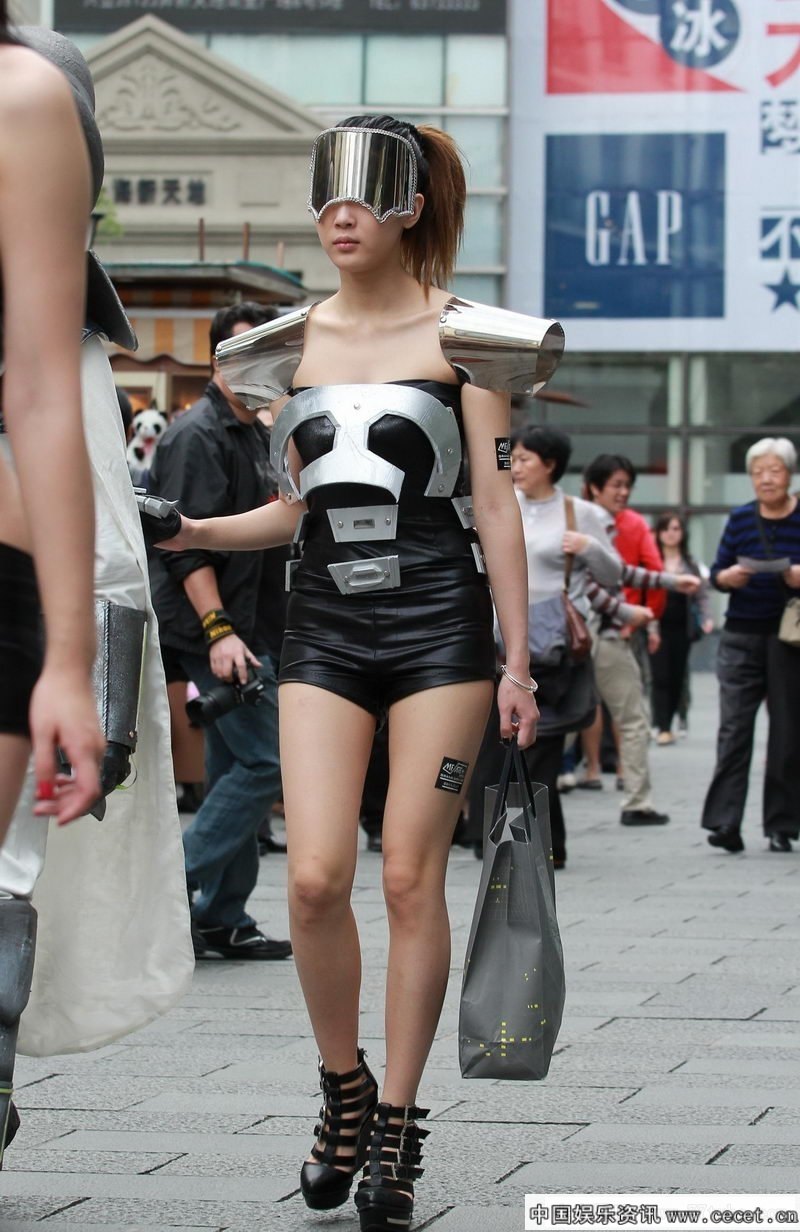 商场前拍性感的未来女战士
