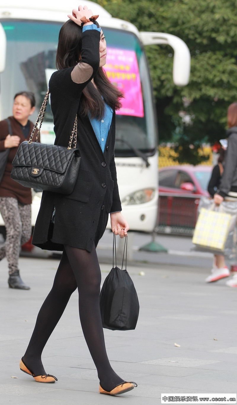 民族路街拍长发丝裤美女
