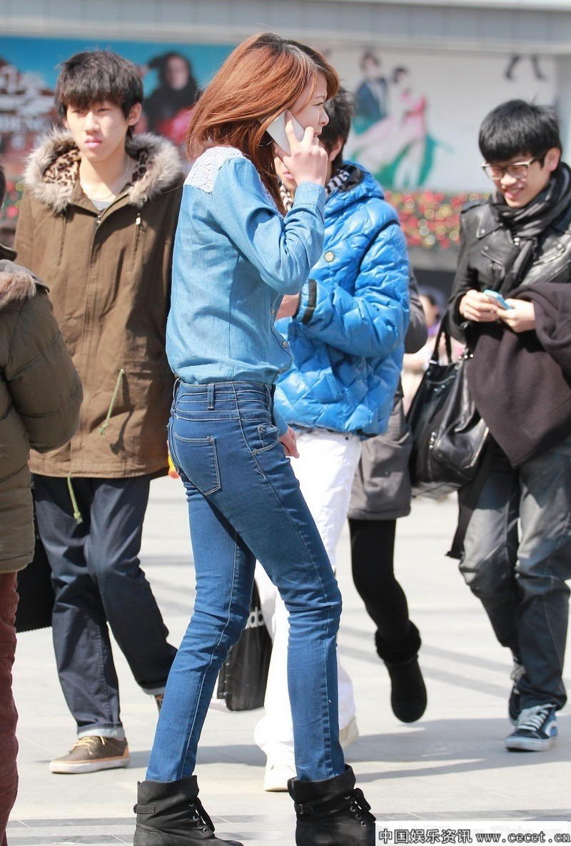 康复路街拍的牛仔紧身