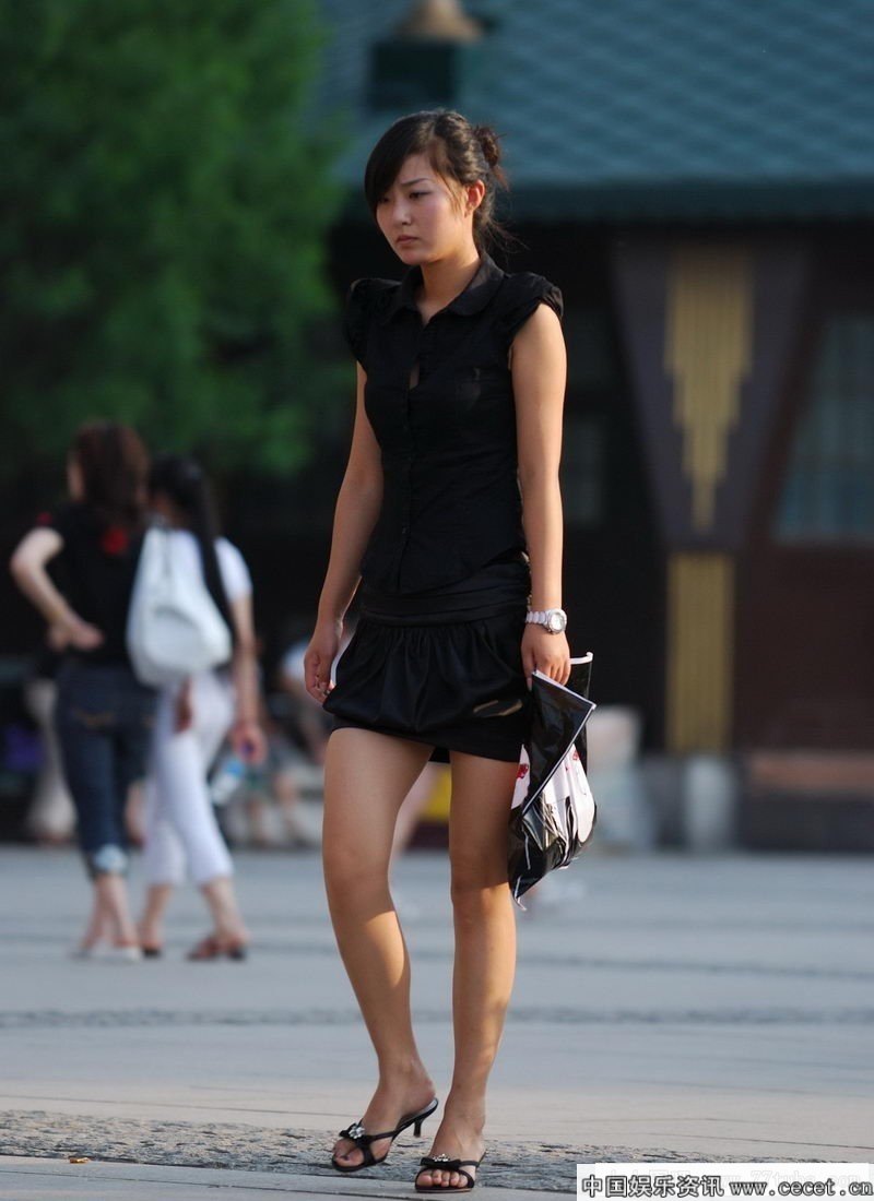 街拍黑色套裙漂亮美女