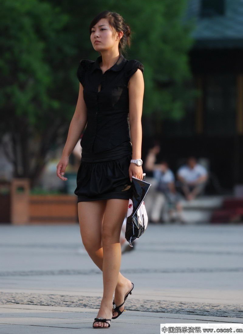 街拍的连衣裙白腿美女
