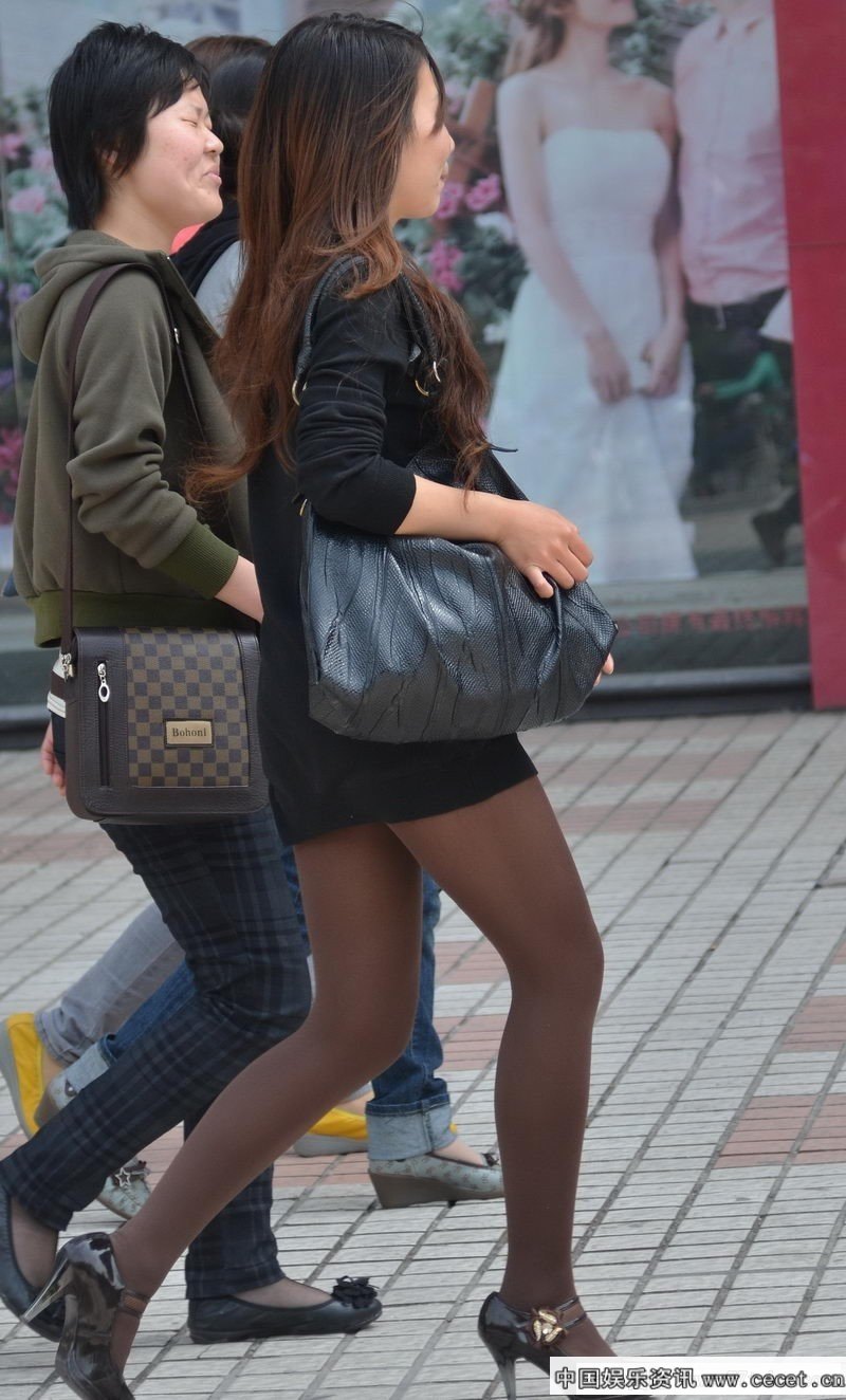 街拍的几个短裙黑色丝