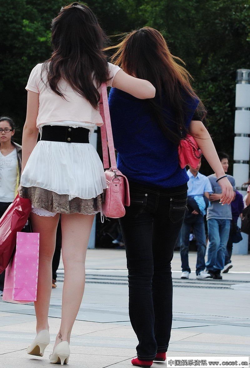 商业街抓拍紧身裤美女