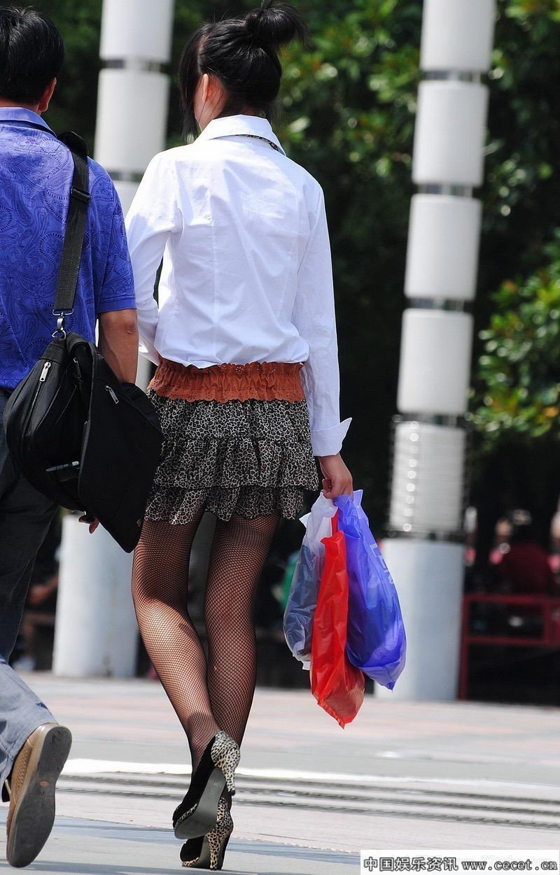 虎山路街拍短裙网袜美女