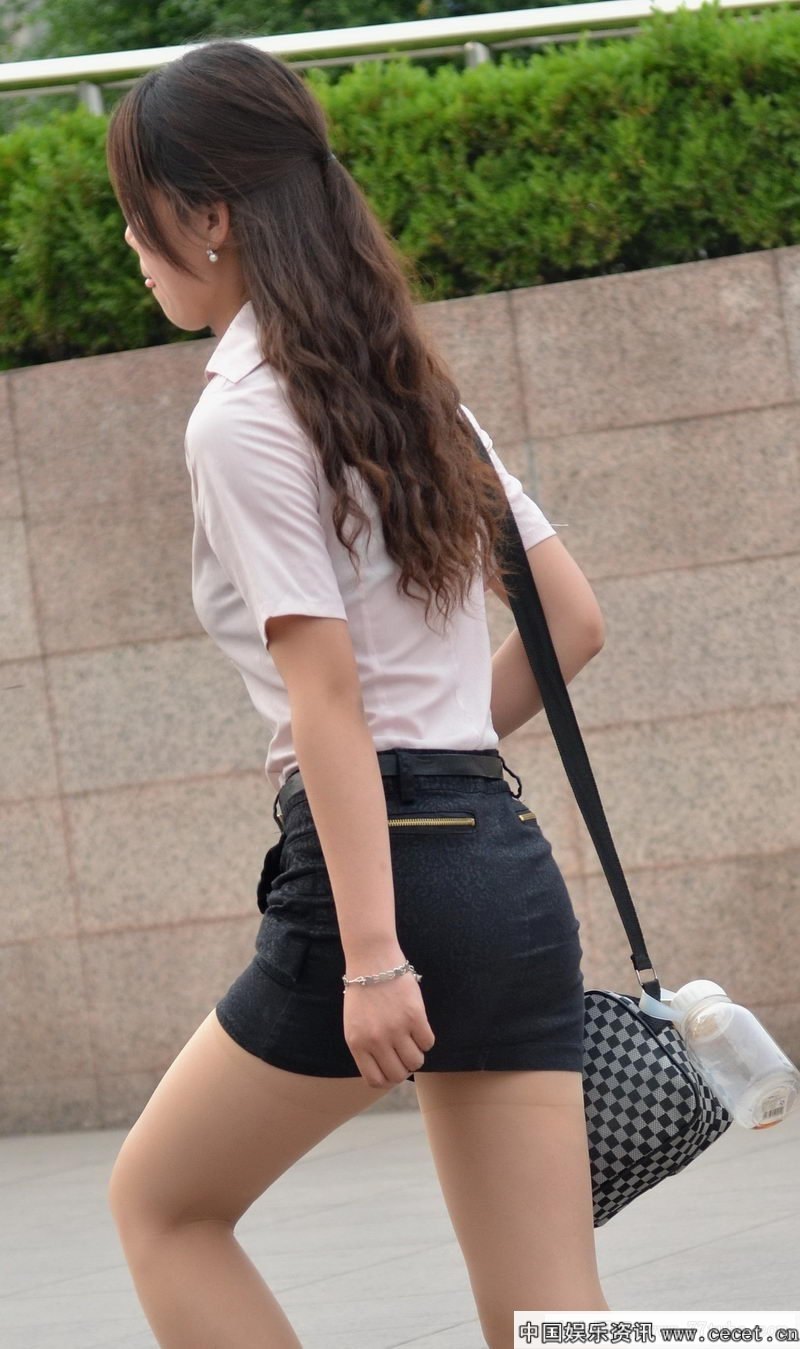 抓拍肉丝袜紧身裙美女