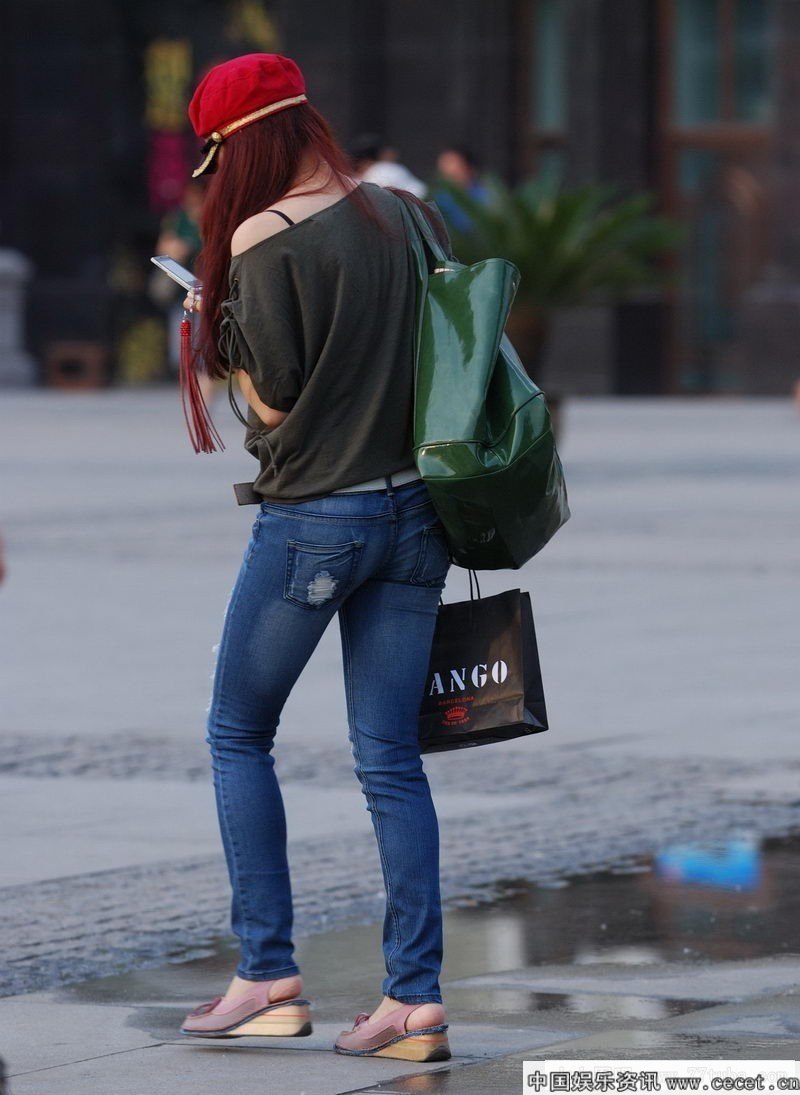 西南财经大学附近街拍牛仔裤美女