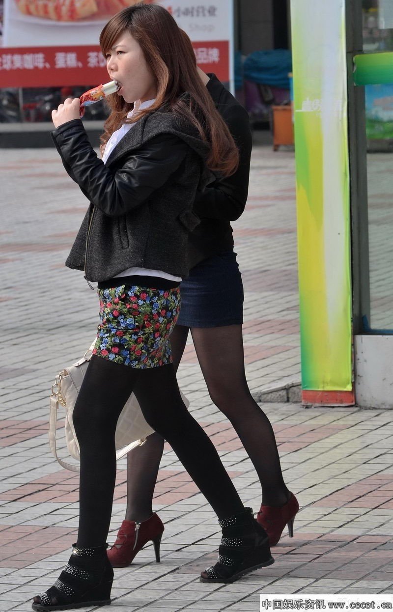 两个逛街的紧身裙黑丝妹妹