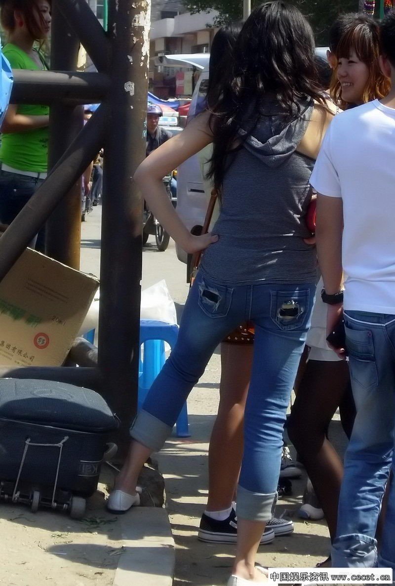 抓拍正在逛街的牛仔裤MM