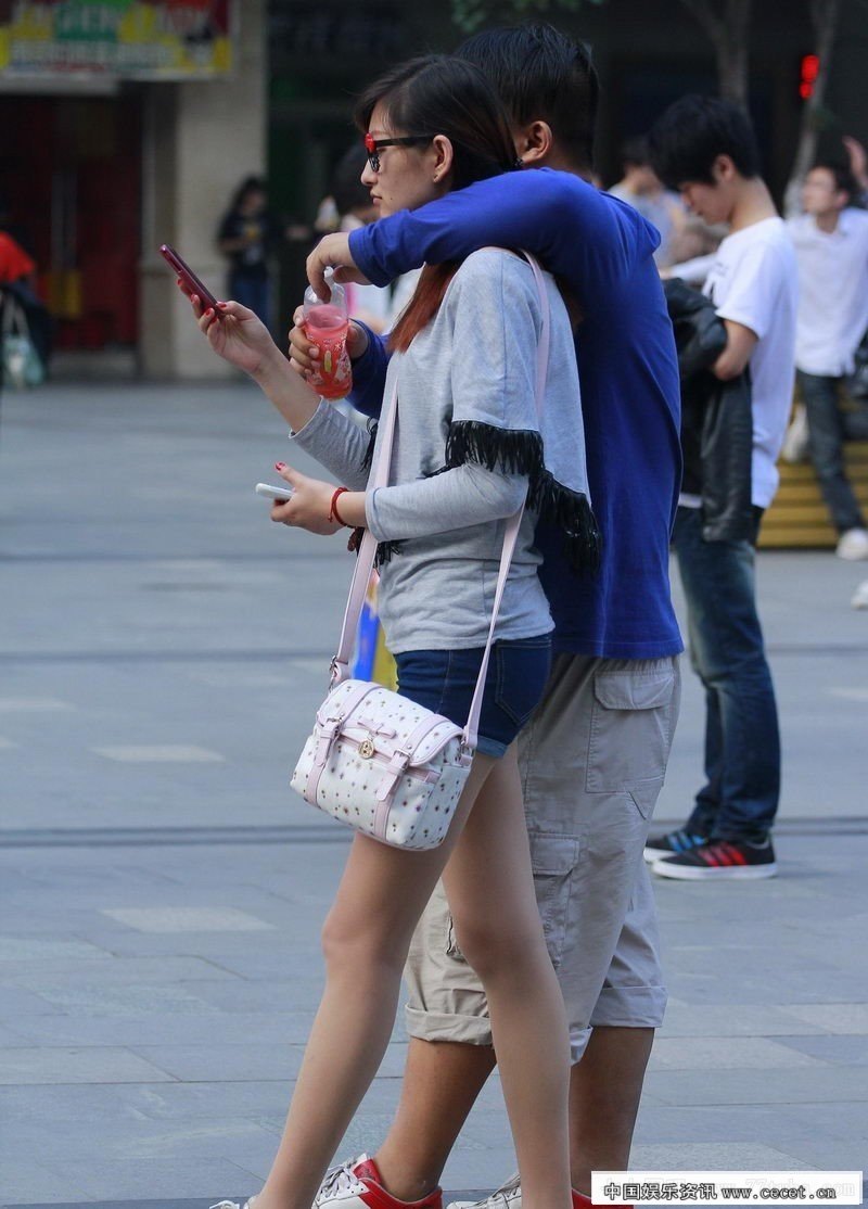 商业街抓拍紧身裤美女