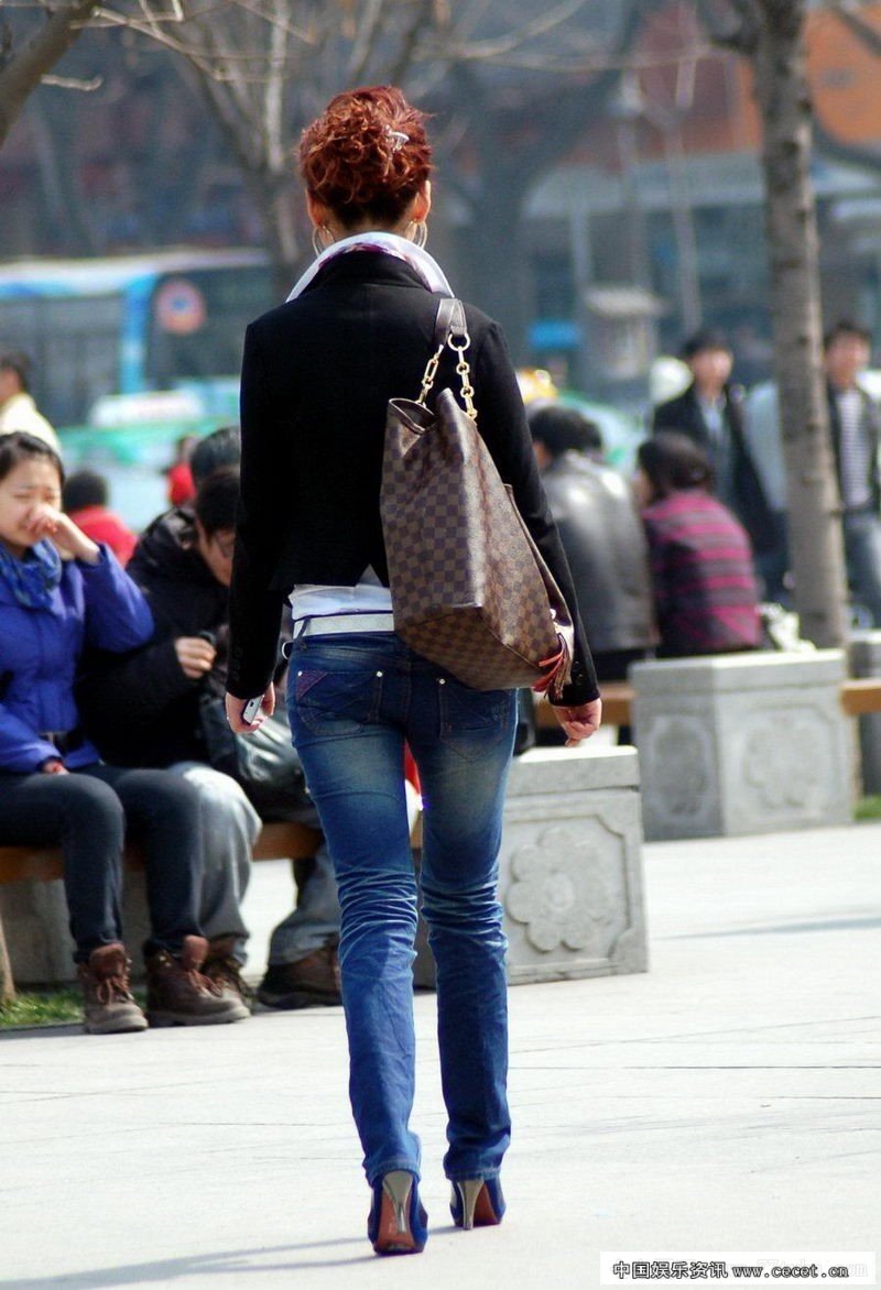 西安高新路街拍牛仔裤美女
