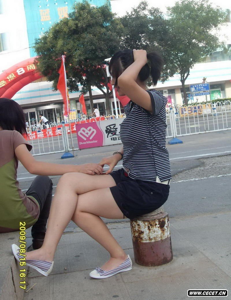 街拍短袖热裤裸腿美眉