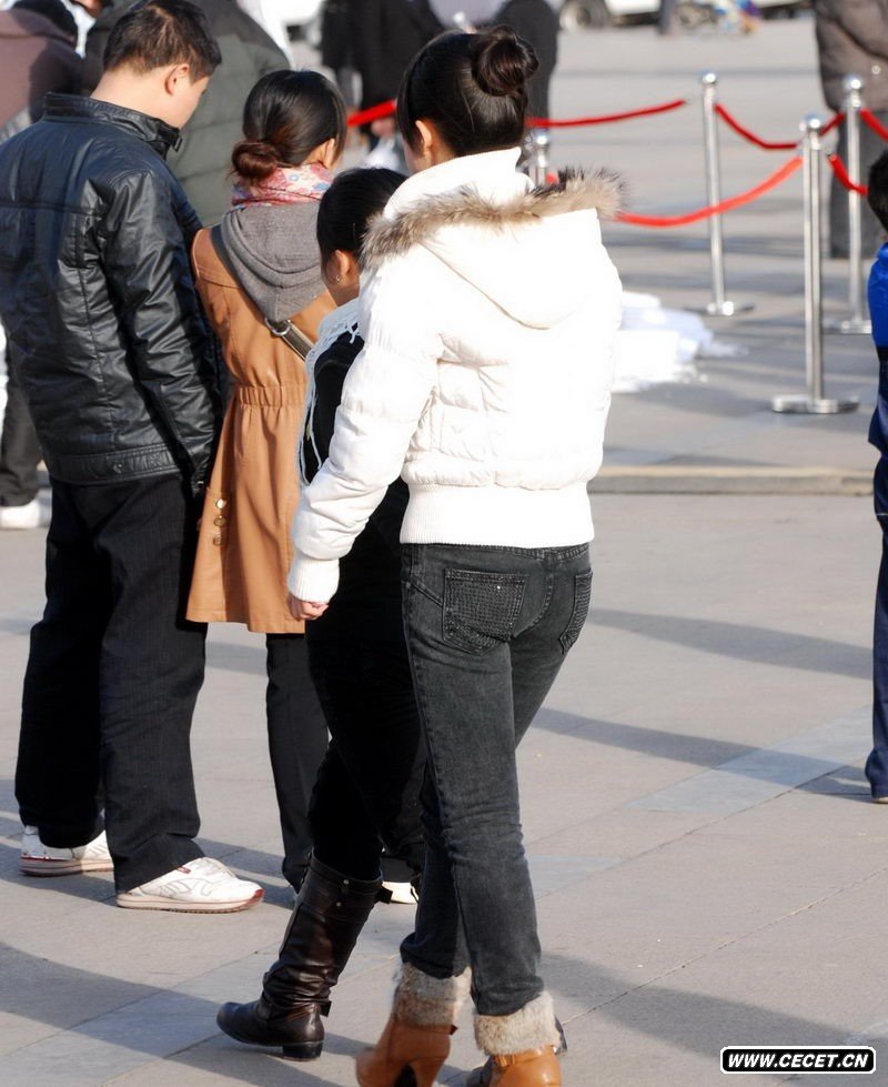 街拍等公交紧身裤美女
