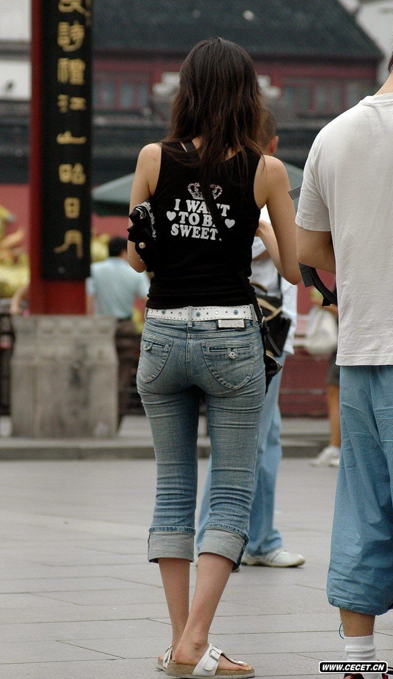 街拍丰满的兰色紧身牛