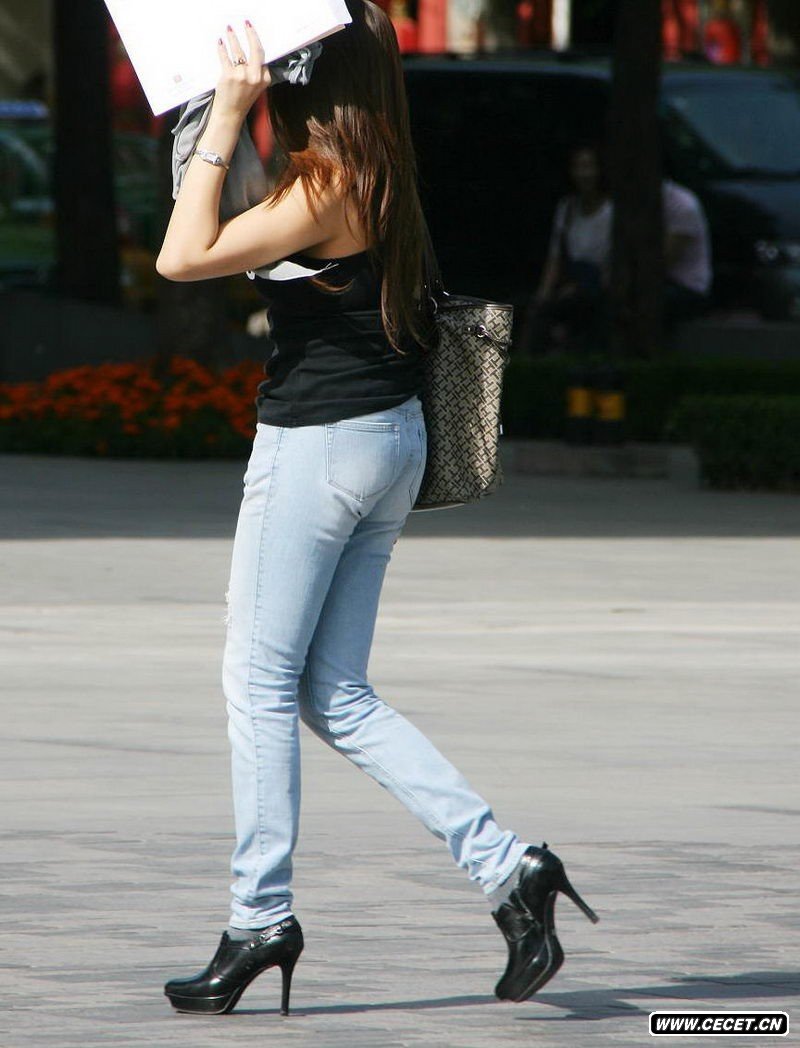 街拍的紧身牛仔裤美女