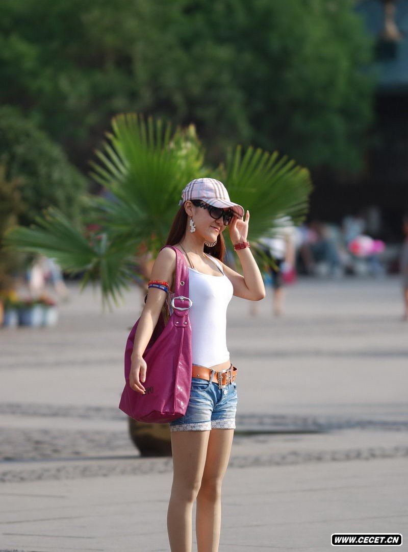 人民广场爱拍照的牛仔短裤美眉
