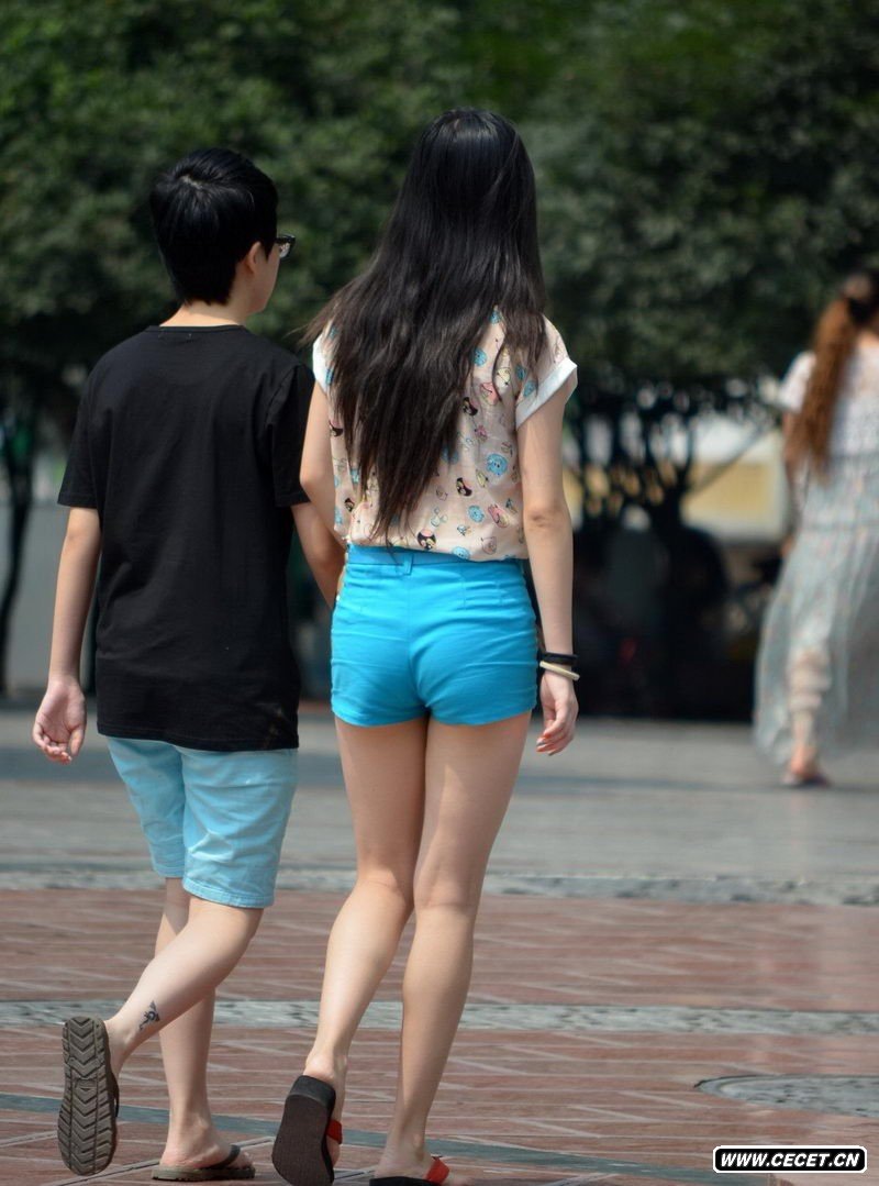 街拍的两个清凉装扮清