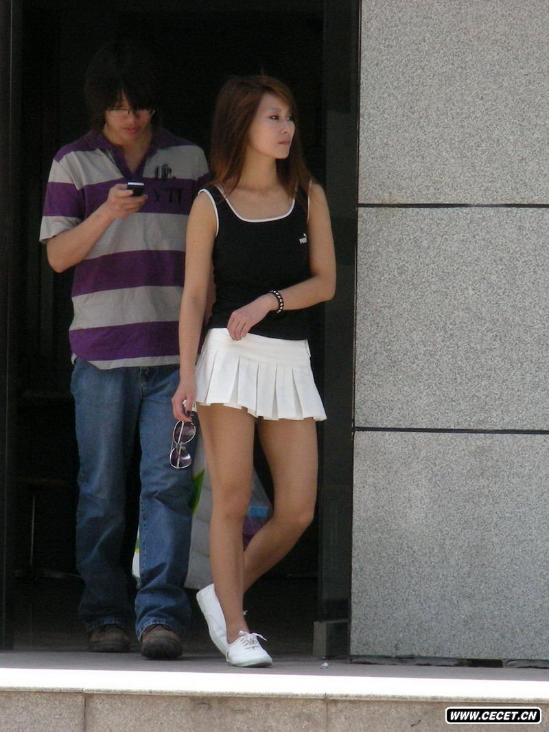 大学城街拍白色网球裙美女