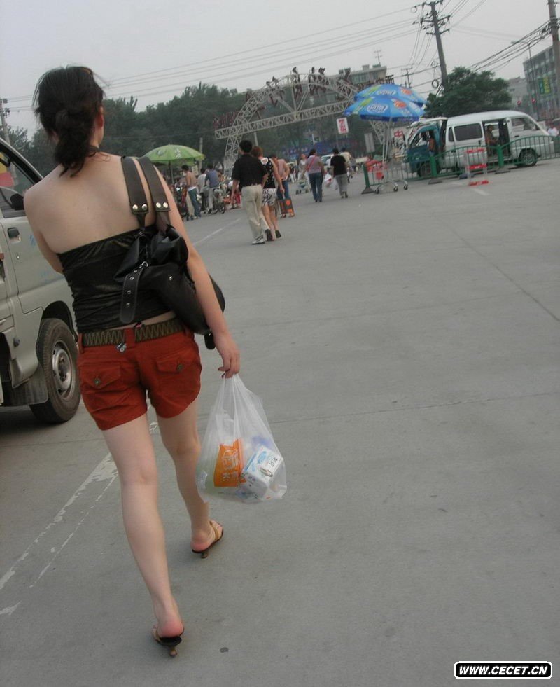 佳丽超市门口街拍清凉装美眉