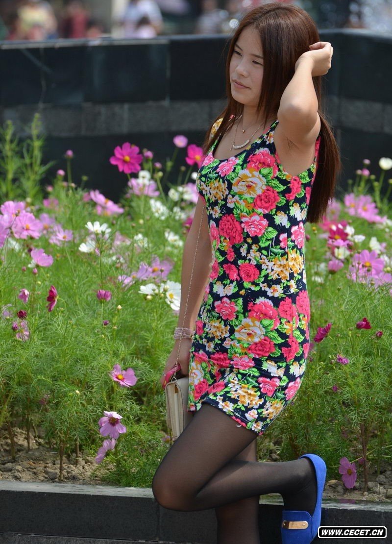 街拍花坛边的丝袜美眉