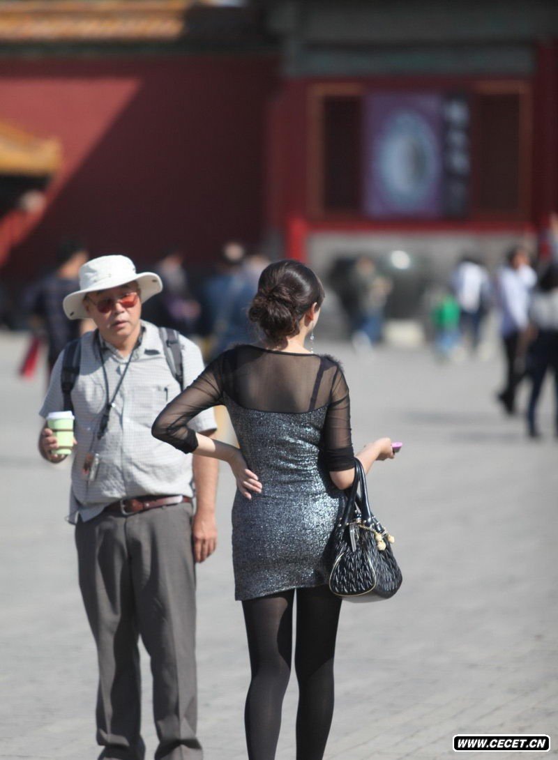 公园抓拍的黑丝打底裤