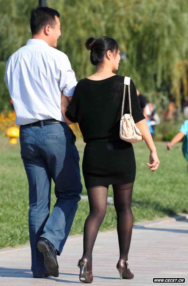 迎宾公园街拍黑丝袜美女